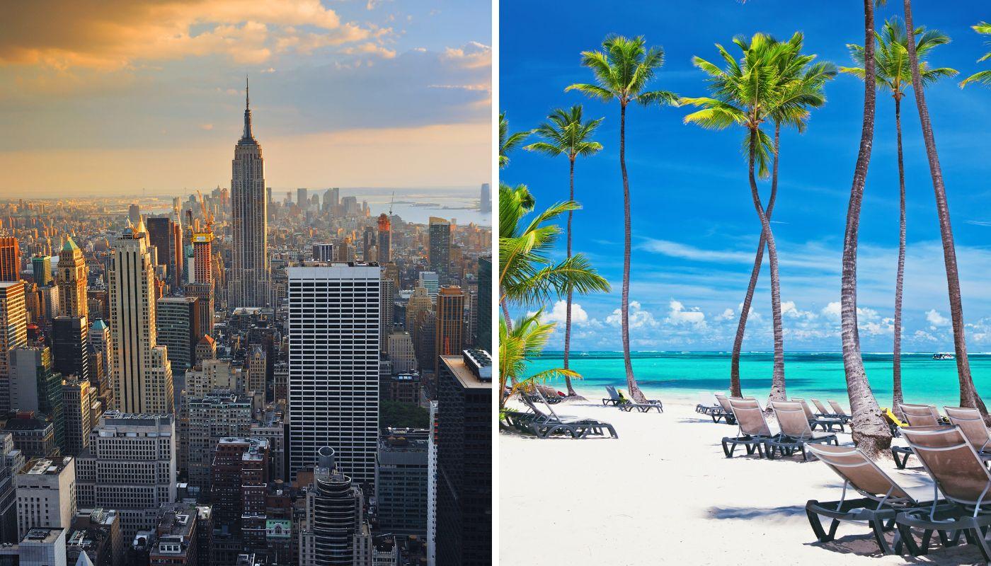 ¿Quién dijo que cruzar el charco es caro? Ahora puedes exprimir al máximo tu luna de miel con uno de los combinados más interesantes. Recorre la ciudad que nunca duerme y deslúmbrate con sus rascacielos y característicos barrios en Nueva York, la urbe que todos hemos soñado alguna vez con conocer. Aparca el estilo de vida cosmopolita y relájate en algunas de las playas más deseadas del mundo: en Punta Cana podrás descansar bajo esbeltas palmeras y bañarte en aguas cristalinas.